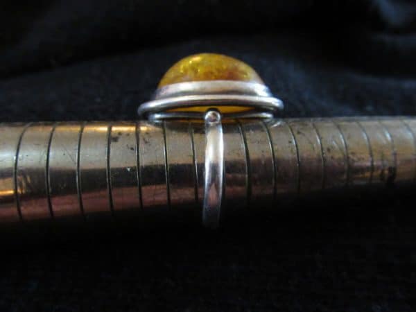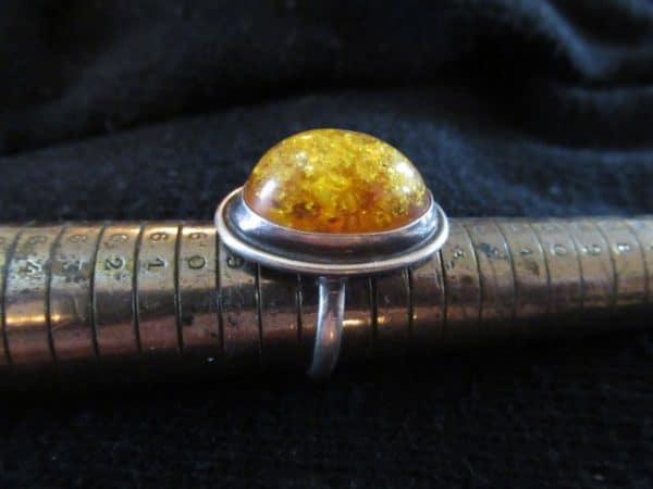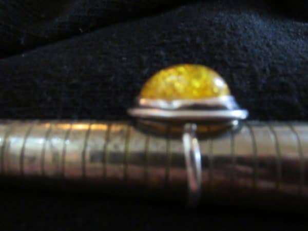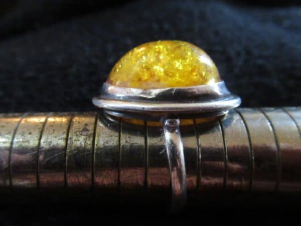 Très belle bague ou chevalière en argent massif et ambre jaune naturel de la mer Baltique.