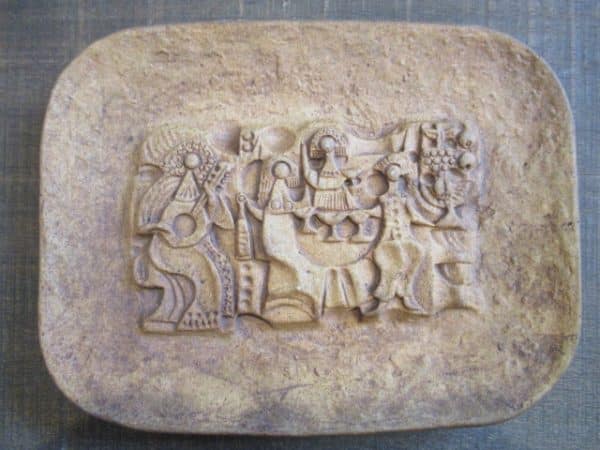Très beau bas-relief représentant une scène de musiciens signé Buchtal.